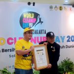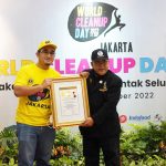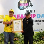 Presiden Original Rekor Indonesia (ORI) Guruh Susanto (kanan) menyerahkan piagam rekor kepada Circular Economy Sr. Specialist PT Chandra Asri Petrochemical Tbk (Chandra Asri), Nicko Setyabudi (kiri) pada acara World Cleanup Day (WCD) 2022 yang diselenggarakan oleh Lions Club dengan tema Pilah Sampah Dari Rumah di Jakarta, Sabtu (17/9). Chandra Asri kembali mendukung program WCD Jakarta yang bertujuan untuk mengedukasi masyarakat menangani masalah sampah rumah tangga di Indonesia. Program ini diadakan di 600 lokasi di wilayah DKI Jakarta diikuti oleh 199.363 peserta dengan jumlah sampah yang berhasil terkumpul sebanyak 247.938 ton.