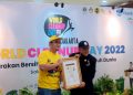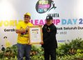 Presiden Original Rekor Indonesia (ORI) Guruh Susanto (kanan) menyerahkan piagam rekor kepada Circular Economy Sr. Specialist PT Chandra Asri Petrochemical Tbk (Chandra Asri), Nicko Setyabudi (kiri) pada acara World Cleanup Day (WCD) 2022 yang diselenggarakan oleh Lions Club dengan tema Pilah Sampah Dari Rumah di Jakarta, Sabtu (17/9). Chandra Asri kembali mendukung program WCD Jakarta yang bertujuan untuk mengedukasi masyarakat menangani masalah sampah rumah tangga di Indonesia. Program ini diadakan di 600 lokasi di wilayah DKI Jakarta diikuti oleh 199.363 peserta dengan jumlah sampah yang berhasil terkumpul sebanyak 247.938 ton.