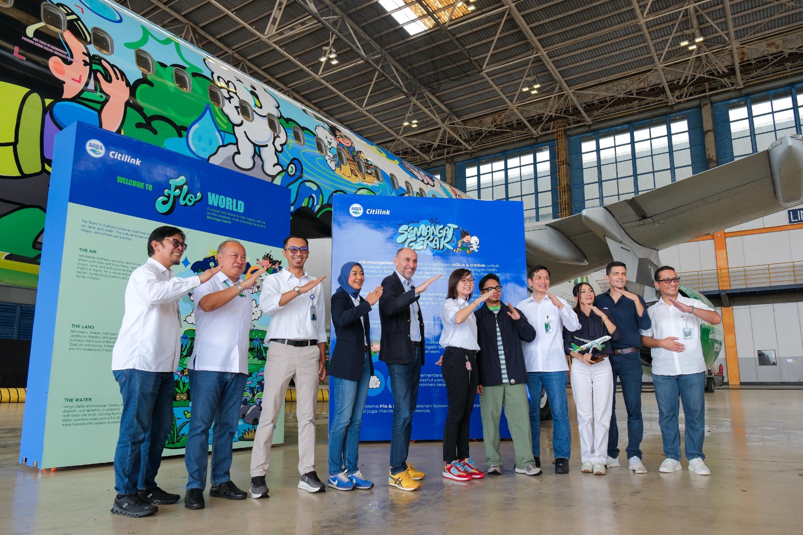 Peluncuran livery Citilink x AQUA digelar di Hanggar GMF, Bandara Soekarno-Hatta, Jumat (13/02/2026). Acara tersebut dihadiri Direktur Utama Citilink Darsito Hendroseputro, CEO Danone Indonesia Laurent Boissier, serta Wakil Menteri Ekonomi Kreatif Republik Indonesia Irene Umar.