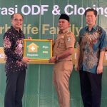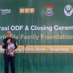 Director of Public Affairs Herbalife Indonesia, Arif Mustolih (kiri) secara simbolis menyerahkan plakat kepada Kepala Desa Kedung Dalem, Suryadi (kedua kiri) didampingi oleh National Director Habitat For Humanity Indonesia, Susanto Samsudin (kedua kanan) usai meresmikan Posyandu di Desa Kedung Dalem, Kecamatan Mauk, Kabupaten Tangerang, Selasa, (07/05/2024). Kegiatan ini merupakan bagian dari kolaborasi Herbalife melalui HFF (Herbalife Family Foundation) dengan Habitat for Humanity Indonesia yang bertujuan untuk meningkatkan kesadaran masyarakat pentingnya sanitasi dan memberantas kebiasaan ODF/Stop Buang Air Besar Sembarangan serta mempersiapkan Desa Kedung Dalem, Kecamatan Mauk, Kabupaten Tangerang agar mampu mencapai deklarasi ODF Desa. Selain program ODF ini, HFF dan Habitat for Humanity Indonesia telah membangun 1 unit Posyandu, memberikan penguatan kapasitas 60 kader, pemantauan asupan nutrisi, kampanye dan advokasi buang air besar di toilet guna meningkatkan fasilitas sanitasi yang layak.