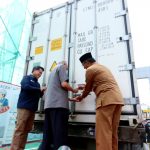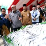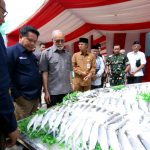 Direktur Utama BSI Hery Gunardi (kiri) bersama Asisten Administrasi Umum Pejabat Gubernur Aceh DR. H. Iskandar AP,S.Sos, Msi (tengah) dan Wali Nanggroe Aceh Tgk Malik Mahmud Al-Haytar Saat pelepasan Ekspor perdana Binaan BSI di Banda Aceh, Selasa (6/9). BSI mendorong desa-desa binaan naik kelas. Kali ini, BSI menggarap Desa Meunasah Asan Aceh Timur sebagai Desa Berdaya Sejahtera Indonesia untuk go global. Hasil tambak bandeng seluas 200 Ha di Desa Meunasah Asan mencapai 60 ton dan mampu menembus pasar ekspor ke Korea Selatan dan Jepang. Dengan adanya pendampingan program bersama BSI, ditargetkan periode produksi menjadi 3 kali setahun dari semula hanya 1 kali dalam setahun.