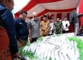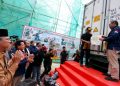 Direktur Utama BSI Hery Gunardi (kiri) bersama Asisten Administrasi Umum Pejabat Gubernur Aceh DR. H. Iskandar AP,S.Sos, Msi (tengah) dan Wali Nanggroe Aceh Tgk Malik Mahmud Al-Haytar Saat pelepasan Ekspor perdana Binaan BSI di Banda Aceh, Selasa (6/9). BSI mendorong desa-desa binaan naik kelas. Kali ini, BSI menggarap Desa Meunasah Asan Aceh Timur sebagai Desa Berdaya Sejahtera Indonesia untuk go global. Hasil tambak bandeng seluas 200 Ha di Desa Meunasah Asan mencapai 60 ton dan mampu menembus pasar ekspor ke Korea Selatan dan Jepang. Dengan adanya pendampingan program bersama BSI, ditargetkan periode produksi menjadi 3 kali setahun dari semula hanya 1 kali dalam setahun.