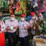 Kepala Perwakilan Bank Indonesia Provinsi DKI Jakarta, Onny Widjanarko (kedua dari kiri) Bersama Direktur Ritel & Syariah, Babay Parid Wazdi (ketiga dari kiri) usai bertransaksi menggunakan JakOne Mobile Bank DKI pada acara monitoring on site penerapan akseptansi pembayaran digital SIAP QRIS (Sehat Inovatif dan Aman Pakai-Quick Response Code Indonesian Standard) di pasar Kebayoran Lama, (11/08).