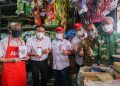 Kepala Perwakilan Bank Indonesia Provinsi DKI Jakarta, Onny Widjanarko (kedua dari kiri) Bersama Direktur Ritel & Syariah, Babay Parid Wazdi (ketiga dari kiri) usai bertransaksi menggunakan JakOne Mobile Bank DKI pada acara monitoring on site penerapan akseptansi pembayaran digital SIAP QRIS (Sehat Inovatif dan Aman Pakai-Quick Response Code Indonesian Standard) di pasar Kebayoran Lama, (11/08).
