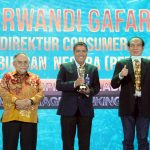 Direktur Consumer Bank BTN Hirwandi Gafar berbincang dengan Mantan Menteri Perumahan Rakyat dan Permukiman Theo L Sambuaga usai menerima penghargaan The Inspiring Leader of Mortgage Banking 2022 dalam ajang Properti Indonesia Award (PIA) 2022 di Jakarta, Rabu (7/9). Hirwandi dinobatkan sebagai The Inspiring Leader of Mortgage Banking 2022 karena kiprahnya dalam mendongrak pembiayaan rumah rakyat sangat besar. Selain itu dalam ajang PIA 2022 Bank BTN juga meraih penghargaan Top Mortgage Lender untuk KPR Subsidi BTN dan The Favourite Mortgage for Millennials Market untuk KPR Non Subsidi. Bank BTN terus berkomitmen melakukan pembiayaan rumah rakyat mulai dari hulu sampai hilir agar masyarakat bisa memiliki hunian yang layak.
