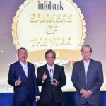 Direktur Utama PT Bank Tabungan Negara Nixon LP Napitupulu (tengah) tersenyum usai meraih penghargaan Bankers of The Year yang diserahkan Bankir Senior Sigit Pramono (kanan) dan Chairman Infobank Media Group Eko B Supriyanto (kiri) di Jakarta, Senin (9/12). Penghargaan tersebut merupakan apresiasi atas kepemimpinan strategis yang berhasil mendorong transformasi digital, memperkuat keberlanjutan, dan menggerakkan seluruh jajaran BTN menuju visi perseroan sebagai Mitra Utama dalam Pemberdayaan Finansial Keluarga Indonesia. Selain itu, Jajaran Direksi BTN juga meraih penghargaan The Next Future Leaders 2025 di antaranya Direktur Operations I Nyoman Sugiri Yasa, Direktur Information Technology Tan Jacky Chen, Direktur Risk Management Setiyo Wibowo, Direktur Network & Retail Funding Rully Setiawan, serta Direktur Treasury & International Banking Venda Yuniarti. Apreasiasi ini menjadi semangat bagi manajemen BTN untuk terus memberikan layanan terbaik bagi masyarakat Indonesia.