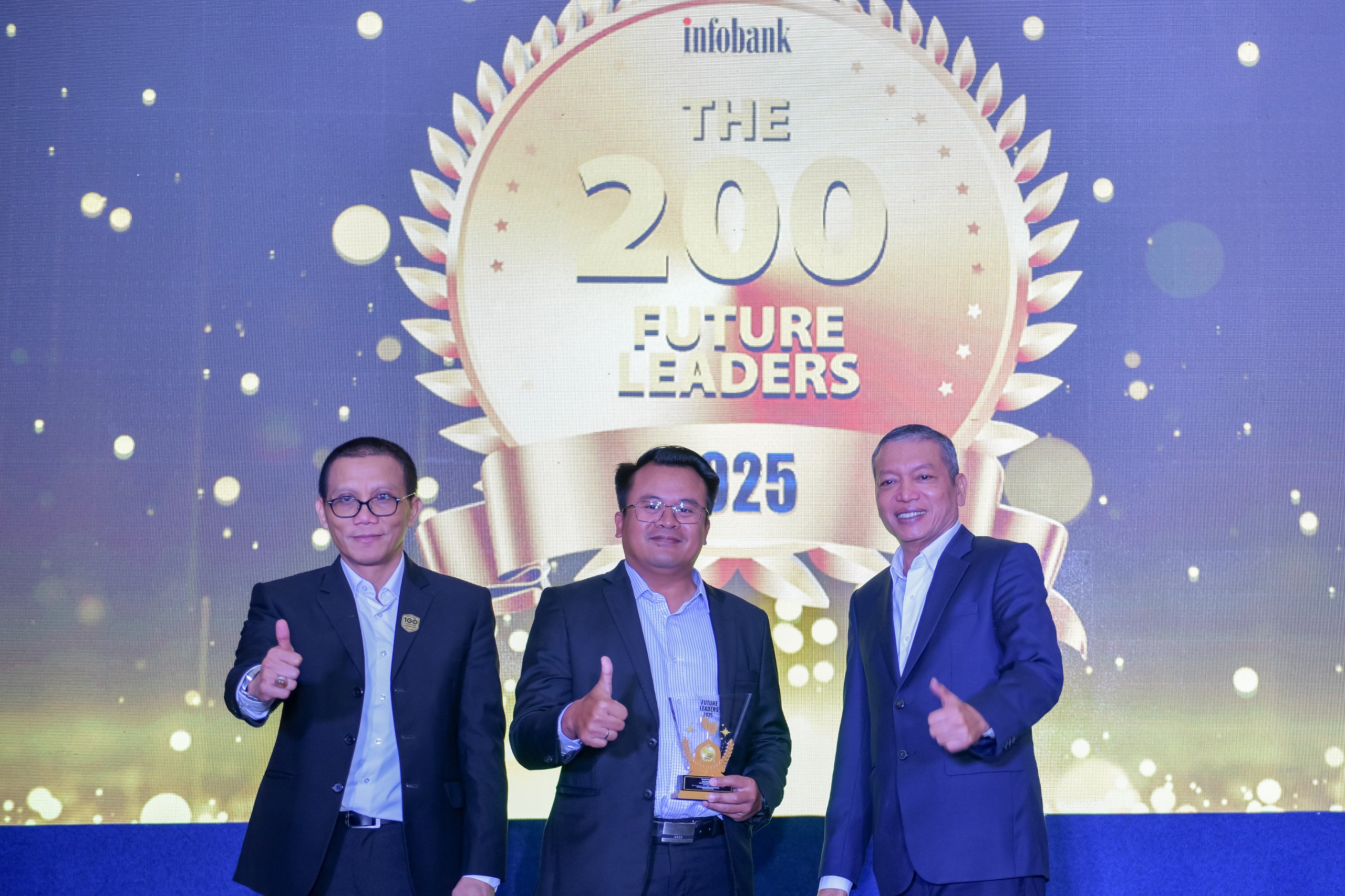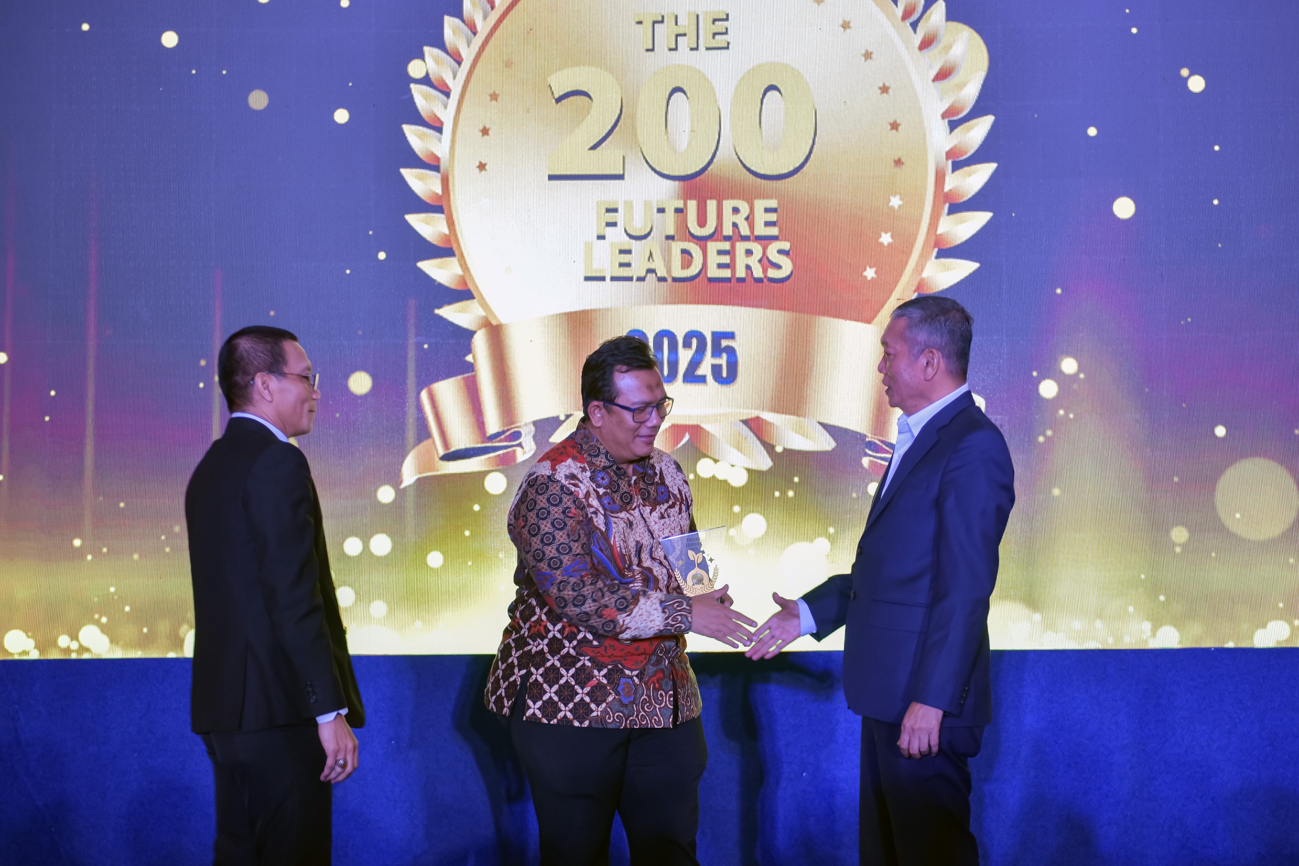 Direktur Utama PT Bank Tabungan Negara Nixon LP Napitupulu (tengah) tersenyum usai meraih penghargaan Bankers of The Year yang diserahkan Bankir Senior Sigit Pramono (kanan) dan Chairman Infobank Media Group Eko B Supriyanto (kiri) di Jakarta, Senin (9/12). Penghargaan tersebut merupakan apresiasi atas kepemimpinan strategis yang berhasil mendorong transformasi digital, memperkuat keberlanjutan, dan menggerakkan seluruh jajaran BTN menuju visi perseroan sebagai Mitra Utama dalam Pemberdayaan Finansial Keluarga Indonesia. Selain itu, Jajaran Direksi BTN juga meraih penghargaan The Next Future Leaders 2025 di antaranya Direktur Operations I Nyoman Sugiri Yasa, Direktur Information Technology Tan Jacky Chen, Direktur Risk Management Setiyo Wibowo, Direktur Network & Retail Funding Rully Setiawan, serta Direktur Treasury & International Banking Venda Yuniarti. Apreasiasi ini menjadi semangat bagi manajemen BTN untuk terus memberikan layanan terbaik bagi masyarakat Indonesia.