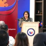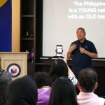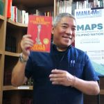 Konsulat jenderal Gonarano B. Musor of the Philipi e Embassy in Jakarta (kiri) berbincang dengan Sejarawan Publik dan Kurator Independen Ambeth R. Ocampo saat launching buku di kedutaan besar Filipina di Jakarta, Minggu (21/9/2024). Dalam rangka memperingati HUT ke-75 Hubungan Diplomatik antara Filipina dan Indonesia, dan perayaan tahunan Bulan Peduli Bangsa Maritim dan Kepulauan (MANA Mo) Kedutaan Besar Filipina mengundang Dr. Ambeth Ocampo seorang profesor ternama, sejarawan publik, dan kurator independen yang penelitiannya mencakup Filipina
