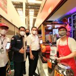 Pemimpin Grup Penjualan Dana & Transaksional, Diki Jatnika (kiri), Deputi Kepala Perwakilan Bank Indonesia Provinsi DKI Jakarta, Suharman Tabrani (kedua dari kiri), bersama Direktur Usaha dan Pengembangan Perumda Pasar Jaya, Anugrah Esa (kedua dari kanan) usai meninjau pertokoan yang telah menerapkan pembayaran digital melalui SIAP QRIS (Sehat Inovatif dan Aman Pakai-Quick Response Code Indonesian Standard) melalui JakOne Mobile pada acara Kegiatan Monitoring /On Site oleh Bank Indonesia di Pasar Koja, Jakarta Utara (19/4).