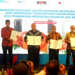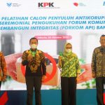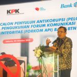 Wakil Ketua Komisi Pemberantas Korupsi (KPK), Alexander Marwata (kiri) dan Direktur Utama PT Bank Tabungan Negara (Persero) Tbk Haru Koesmahargyo (kanan) berfoto bersama sejumlah pegawai BTN yang diangkat sebagi pengurus Forum Komunikasi Ahli Pembangun Integritas (Forkom API) BTN di Jakarta, Senin (3/10). Untuk mendukung gerakan anti korupsi dan penegakan integritas di lingkungan kerja BTN, Bank BTN menggelar pelatihan calon Penyuluh Anti Korpsi (Pelopor) dan Pengukuhan Forkom API BTN yang diikuti pegawai dan Ikatan Istri Karyawan dan Pegawai Bank BTN.