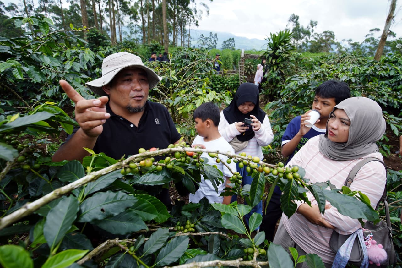 Pemilik Bareto Coffee Rudi Sugiman saat memberikan edukasi kopi di Bareto Coffee, Pangalengan, Kabupaten Bandung, Jawa Barat, Sabtu (7/2/2026). PT Jaminan Kredit Indonesia (Jamkrindo) mendukung pertumbuhan UMKM berkelanjutan dan berkontribusi pada ekonomi melalui penjaminan kredit yang meningkatkan akses pembiayaan UMKM ke lembaga keuangan formal serta menjalin kemitraan strategis dengan berbagai pihak untuk memperluas jangkauan layanan dan mendorong pertumbuhan ekonomi nasional secara inklusif dan berkelanjutan.