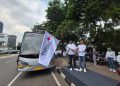 President Director & Chief Executive Officer (CEO) Indosat Ooredoo Hutchison (Indosat) Vikram Sinha (kedua kanan) dan Director & Chief Technology Officer Desmond Cheung melepas Ekspedisi Jaringan Andal di Jakarta, Selasa (11/3/2025). Indosat menggelar Ekspedisi Jaringan Andal guna memantau performa jaringan, sekaligus meningkatkan kapasitas serta cakupan layanan di berbagai titik keramaian.