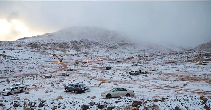 Pusat Meteorologi Nasional (NCM) menyatakan cuaca ekstrem tersebut disebabkan oleh masuknya massa udara dingin yang membawa awan hujan dan menurunkan suhu hingga di bawah nol derajat Celsius di beberapa wilayah. Seiring kondisi tersebut, otoritas setempat mengeluarkan peringatan dini dan mengimbau masyarakat untuk meningkatkan kewaspadaan, terutama saat berkendara, mengingat potensi terbentuknya lapisan es di jalan serta kemungkinan terjadinya angin kencang, hujan es, dan kabut dalam beberapa hari ke depan