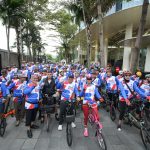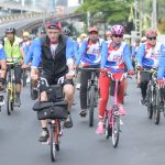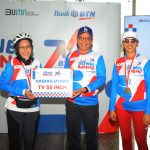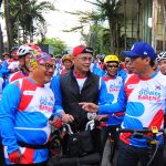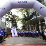 Direktur Utama BTN Nixon LP Napitupulu melakukan flag off untuk melepas peserta gowes bareng dalam rangka HUT ke74 BTN di Jakarta, Minggu (25/2). Gowes bareng tersebut merupakan rangkaian kegiatan HUT BTN yang mengambil tema Membangun Peradaban dan Mada Depan Bangsa yang diikuti oleh pegawai BTN kantor pusat dari beberapa kantor cabang dengan jumlah peserta hampir mencapai 500 orang. Kegiatan ini merupakan bagian dari Aktivasi Nilai-Nilai Employee Value Proposition (EVP) dengan membuka ruang seluas-luasnya kepada seluruh BTNers untuk mengekspresikan minat dan bakat diluar pekerjaan yang mendukung work-life balance.