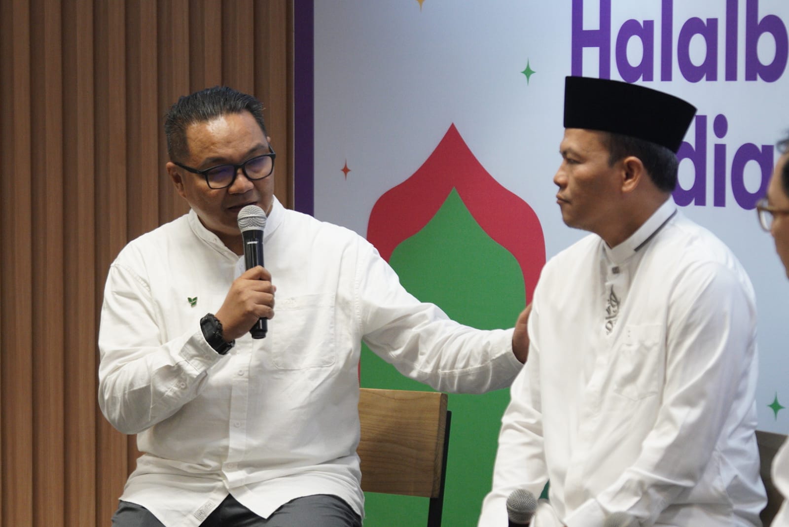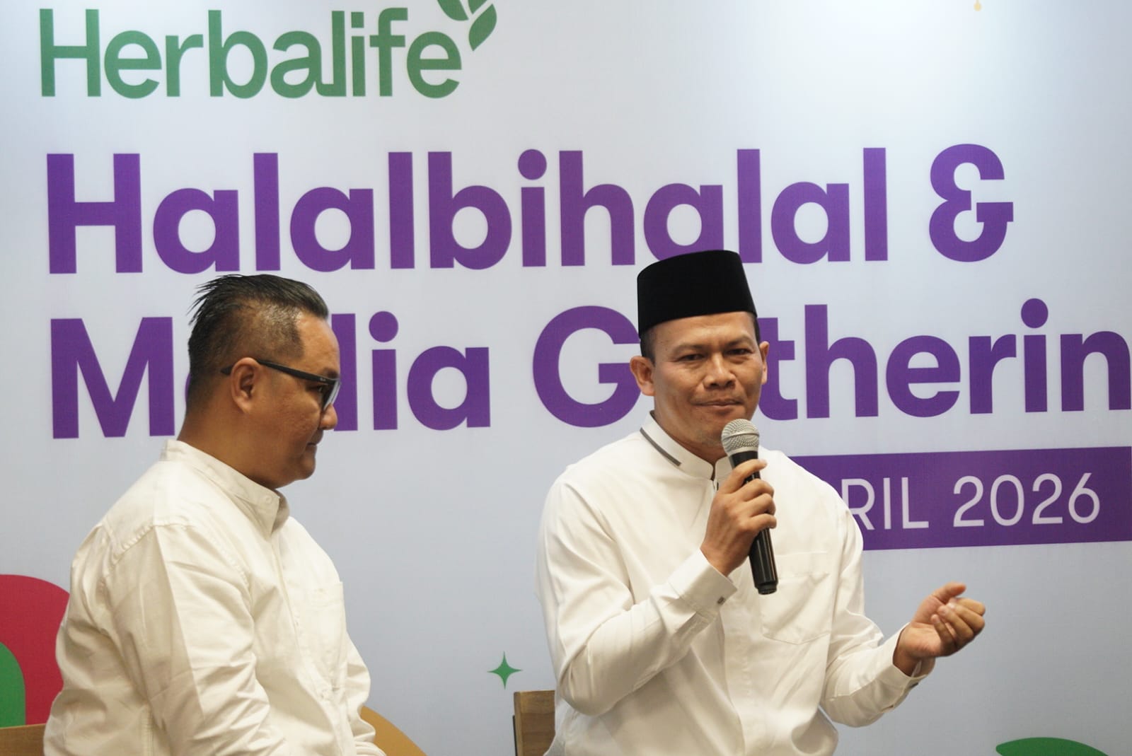 Direktur & General Manager Herbalife Indonesia, Oktrianto Wahyu Jatmiko (kiri) dan, Dewan Pengawas Syariah Herbalife, Fauzan Sugiyono berfoto bersama usai acara Halalbihalal dan media gathering bersama parajurnalis di Jakarta, Selasa, 07 April 2026.
