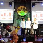 Direktur PT Kustodian Sentral Efek Indonesia (KSEI) Supranoto Prajogo(Kiri), Direktur Utama KSEI Uriep Budhi Prasetyo (tengah) dan Direktur KSEI Syafruddin saat memperingati Hut yang ke 25 tahun berdirinya KSEI di Hard Rock Cafe Sudirman Jakarta, Jumat, 23/12/2022. PT Kustodian Sentral Efek Indonesia (KSEI) memasuki usia perak 25 tahun. KSEI yang berperan sebagai Lembaga Penyimpanan dan Penyelesaian (LPP) di pasar modal Indonesia ini memperoleh sederet prestasi, antara lain gelar sebagai Kustodian sentral terbaik di Asia Tenggara untuk yang kelima kalinya.