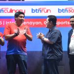 Direktur Utama BTN Nixon LP Napitupulu bersama Menteri BUMN Erick Thohir, Menteri PKP Maruarar Sirait, Ketua Komisi XI DPR Misbakhun dan Komisaris Utama BTN Chandra M Hamzah memegang bola sebagai tanda peresmian dan grand launching Super App Bale by BTN di Jakarta, Minggu, (9/2). Bale by BTN merupakan inisiatif strategis perseroan untuk bisa lebih kompetitif lagi dalam menjadikan BTN sebagai bank transaksional. Diharapkan dengan hadirnya Bale by BTN dapat menarik lebih banyak dana murah ritel secara berkelanjutan dan juga mempermudah nasabah untuk memenuhi kebutuhannya secara digital.