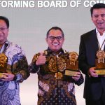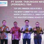 Direktur Human Capital, Compliance & Legal Bank BTN Eko Waluyo berbincang dengan Corporate Secretary Bank BTN Ramon Armando dan Kepala Divisi Compliance & Governance Division Wahju B Witjaksono usai menerima penghargaan Top GRC Award 2023 di Jakarta, Rabu (6/9). Bank BTN dinilai menjadi salah satu BUMN terbaik dalam implementasi GCG dengan memborong tiga penghargaan dalam ajang tersebut yakni Top GRC Award 2023 Star 5, The Most Committed GRC Leader 2023 dan The High Perfoming Board of Commissioner on GRC 2023.
