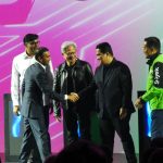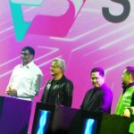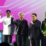 (Dari kiri) President Director & Chief Executive Officer (CEO) Indosat Ooredoo Hutchison Vikram Sinha, Founder & CEO NVIDIA Jensen Huang, Menteri BUMN Erick Thohir dan President Director & CEO GoTo Group Patrick Walujo meluncurkan Sahabat-AI saat ajang Indonesia AI Day di Jakarta, Kamis (14/11/2024). Indosat dan GoTo meluncurkan tahap pertama pengembangan Sahabat-AI, sebuah ekosistem Large Language Model (LLM) open-source yang secara khusus dirancang dalam Bahasa Indonesia serta berbagai bahasa daerah.