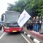 Director & Chief Technology Officer Indosat Desmond Cheung (tengah) didampingi oleh SVP Head of Corporate Communications Indosat Steve Saerang (kanan) dan SVP Head of Network Operations Indosat Agus Sulistio (kiri) saat melepas tim yang akan melakukan uji jaringan di sepanjang jalur mudik Pulau Jawa hari ini, Rabu (02/04).