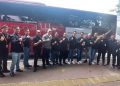 Director & Chief Technology Officer Indosat Desmond Cheung (tengah) didampingi oleh SVP Head of Corporate Communications Indosat Steve Saerang (kanan) dan SVP Head of Network Operations Indosat Agus Sulistio (kiri) saat melepas tim yang akan melakukan uji jaringan di sepanjang jalur mudik Pulau Jawa hari ini, Rabu (02/04).