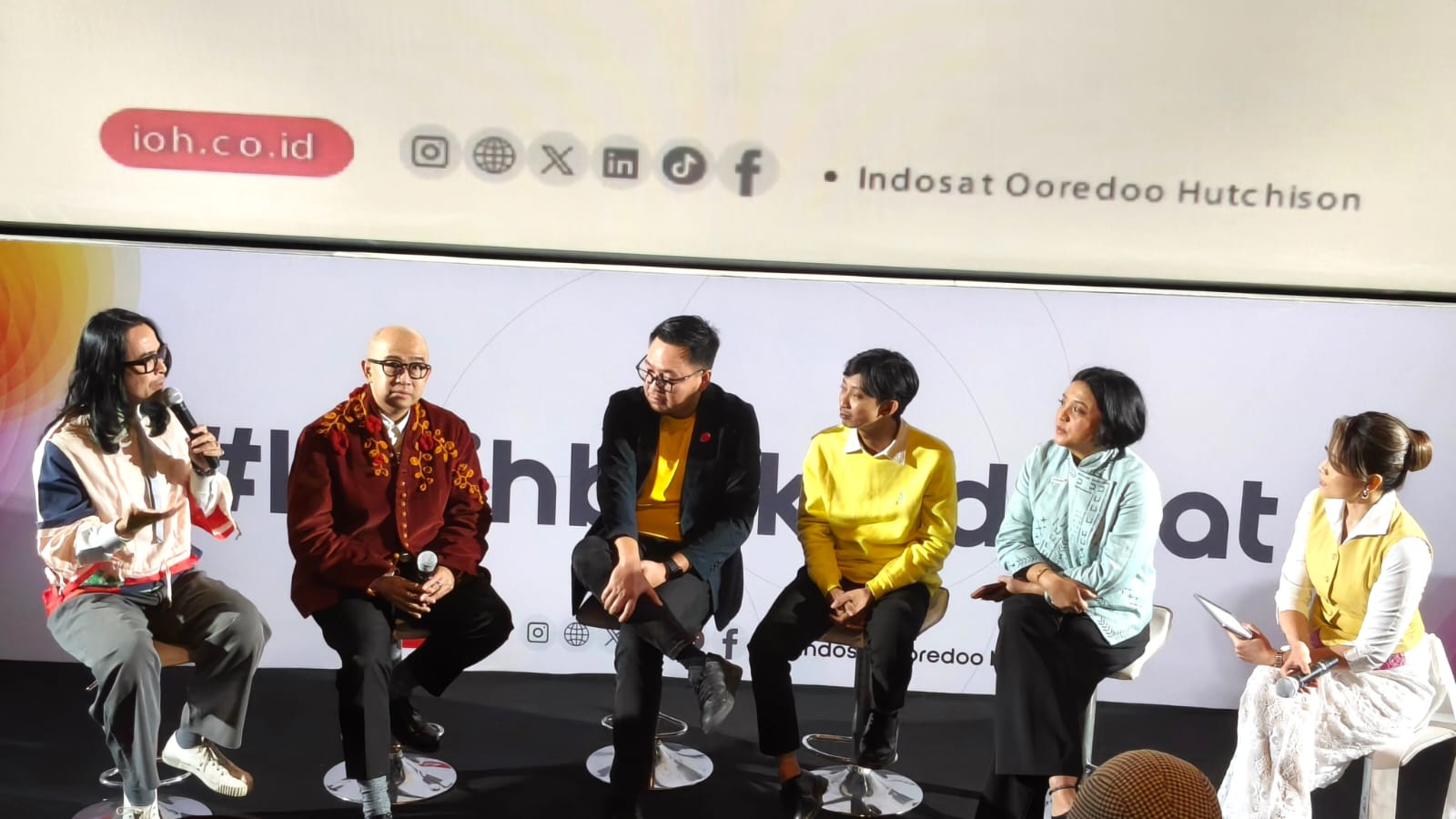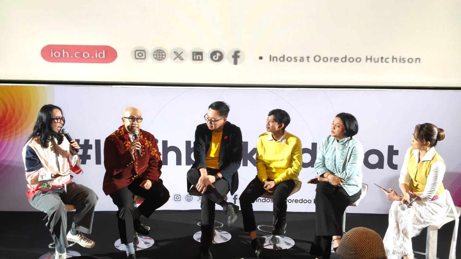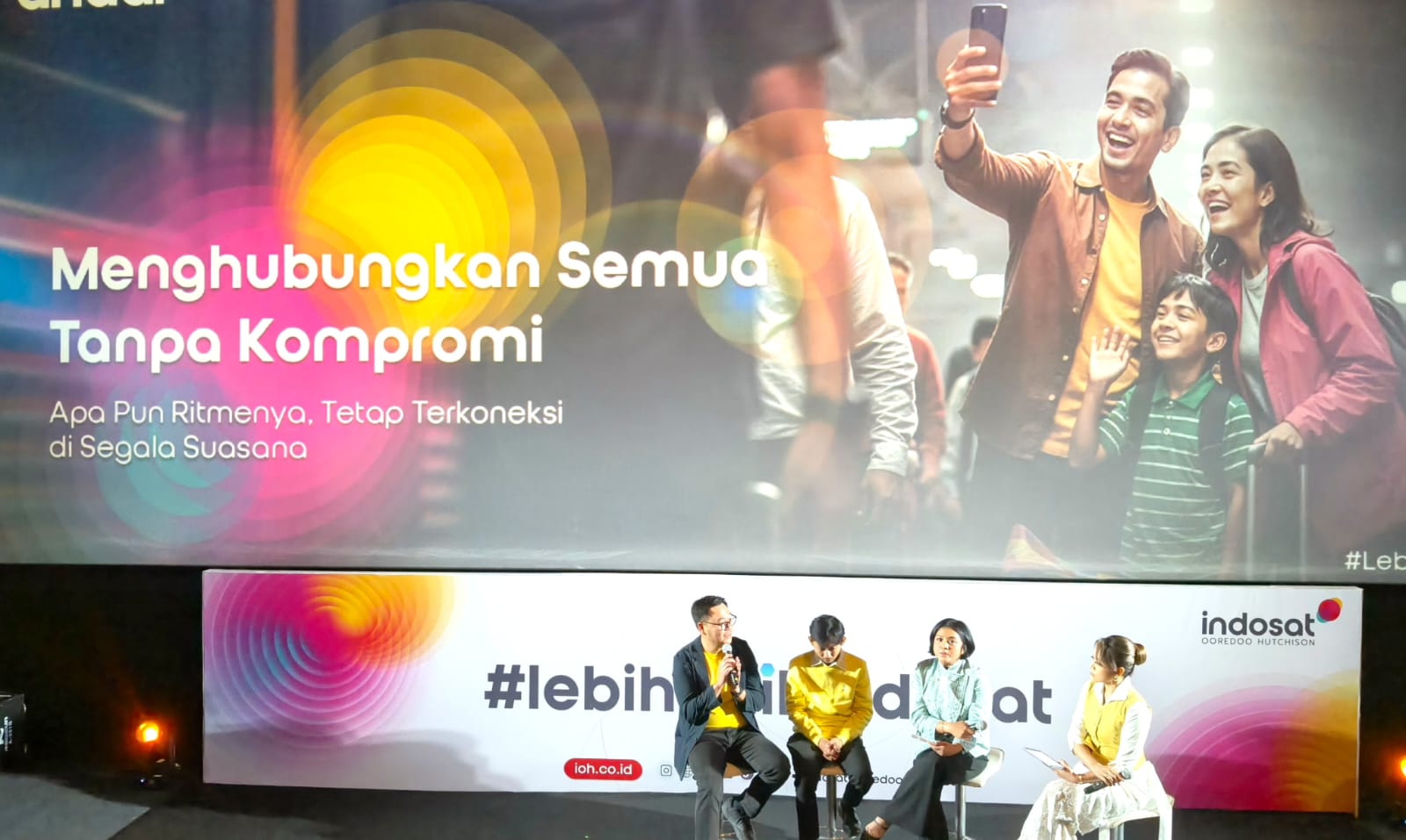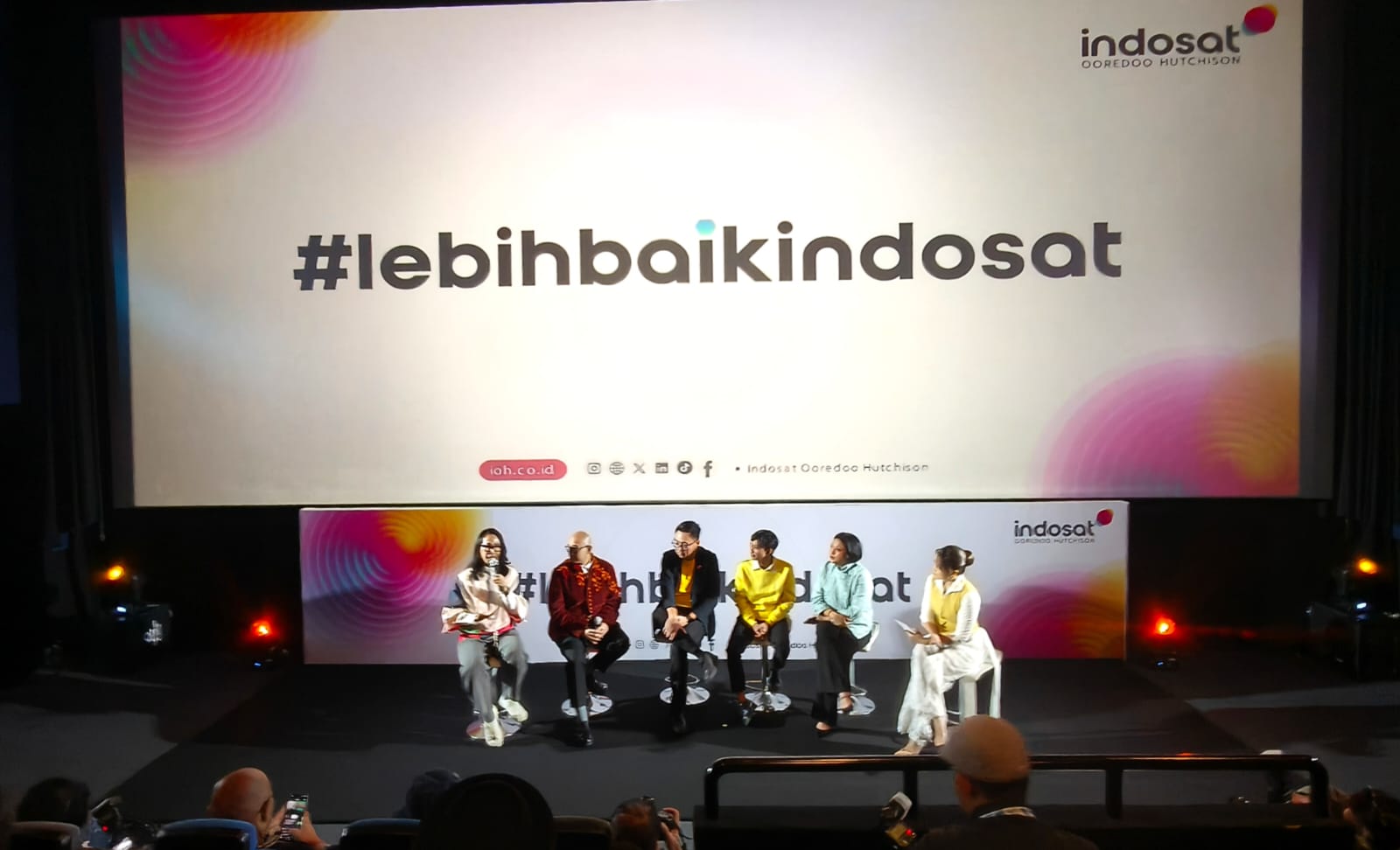 (ki-ka) Dave Hendrik & Iwet Ramadhan Creative Duo Personalities, Ovidia Nomia SVP-Head of Corporate Communications, Raden Tofan SVP-Head of Network Operations dan Yono Bakrie Stand-up Comedian saat Peluncuran #LebihBaikIndosat yang berlangsung di Jakarta, Jumat (20/2). Mengusung semangat You Only Need One (YONO), Indosat percaya bahwa di momen-momen terpenting, masyarakat hanya membutuhkan satu hal yang benar-benar bisa diandalkan: satu koneksi yang kuat, satu inovasi yang membantu, dan satu aksi nyata yang berdampak. Inilah makna #LebihBaikIndosat di Ramadan tahun ini.
