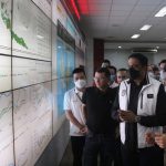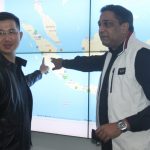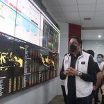 Tampak pada gambar President Director & CEO IOH, Vikram Sinha (tiga dari kanan), Chief Digital Officer IOH, Sanjeev Rawat (kiri) dan SVP-Head of Network Operations IOH, Agus Sulistio, saat meninjau IOH Network Operation Center (INOC) di Kantor Pusat Indosat Ooredoo Hutchison Jakarta (1/5).