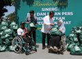Direktur Utama PT Bank Syariah Nasional (BSN), Alex Sofjan Noor (kanan) bersama SEVP Chief of Commercial Banking BSN Maqin U Norhadi memberikan bantuan paket sembako jelang Idul Fitri 1447 H kepada para pekerja dan disabilitas di Jakarta, Jumat (13/3/2026). BSN bersinergi dengan Forum Wartawan BSN menggelar kegiatan sosial bertajuk “Ramadan Berkah, Sinergi BSN dan Insan Pers Menguatkan Kepedulian Umat”. Kegiatan ini merupakan bentuk kepedulian terhadap masyarakat yang membutuhkan, khususnya menjelang Hari Raya Idul Fitri 1447 H. Dalam kegiatan tersebut, BSN menyalurkan ratusan paket sembako yang akan dibagikan di berbagai wilayah Jabodetabek dan sekitar kantor.