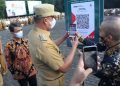 Unit Usaha Syariah Bank DKI yang diwakili oleh Pemimpin Divisi Dana & Jasa, Arie Fakhrizal (tengah) disaksikan oleh Plt. Walikota Bekasi, Tri Adhianto Tjahyono (paling kiri) sedang melakukan penandatanganan Perjanjian Nota Kesepahaman antara Unit Usaha Syariah Bank DKI dan Bank Perkreditan Rakyat Syariah (BPRS) Patriot tentang Pemanfaatan Layanan Digital Perbankan di Kantor Walikota Bekasi pada Senin, 11 Juli 2022.