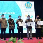Metapos.id – Direktur Ritel dan Syariah Bank DKI, Babay Parid Wazdi (ketiga dari kiri) menerima penyerahan Perjanjian Kerja Sama tentang Sistem Informasi Kredit Program Kredit Usaha Rakyat (SIKP KUR) dari Direktur Jendral Perbendaharaan Kementrian Keuangan Republik Indonesia, Hadiyanto (ketiga dari kanan) dalam acara penyerahan PKS SIKP KUR & PKP SSRG dan Soft Launching SIKP Mobile yang diselenggarakan oleh Kementrian Keuangan Republik Indonesia di Jakarta, (31/3).