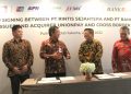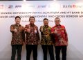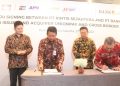 Direktur Operasional & Teknologi PT Bank DKI, Amirul Wicaksono (kedua dari kiri), Direktur Marketing PT Rintis Sejahtera, Suryono Hidayat (paling kanan), Presiden Direktur PT Rintis Sejahtera, Iwan Setiawan (kedua dari kanan), dan Country Director UnionPay International, Andy Xie (paling kiri) berfoto bersama usai melakukan penandatanganan Nota Kesepahaman (MOU) dalam rangka memperluas jaringan transaksi perbankan antar negara. Sebagai informasi, kerjasama yang dijalin Bank DKI dengan PT Rintis Sejahtera merupakan kerjasama layanan transaksi cross border melalui jaringan ATM UnionPay International (UPI) dan APN (PayNet-Malaysia, ITMX-Thailand, KFTC-Korea).