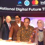(ki-ka) CEO Mastercard Michael Miebach, President Director & CEO Indosat Ooredoo Hutchison Vikram Sinha, Menkominfo RI Budi Arie Setiadi dan Wakil Rektor ITB Bidang Sumber Daya Dr. Ir. Gusti Ayu Putri Saptawati S., M.Comm usai acara Penandatanganan Nota Kesepahaman yang berlangsung di Jakarta, Kamis (18/04). Indosat dan Mastercard berkolaborasi melalui peresmian Indosat-Mastercard Cybersecurity Center of Excellence (CoE).