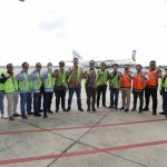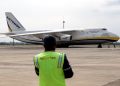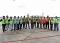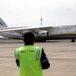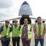 Ki-ka: Direktur Legal, External Affairs & Circular Economy PT Chandra Asri Petrochemical Tbk (Chandra Asri), Edi Rivai, Wakil Presiden Direktur Komersial, Baritono Prajogo Pangestu, Komisaris, Agus Salim Pangestu dan Wakil Presiden Direktur Operasional, Krit Bunnag berfoto bersama di depan pesawat kargo terbesar di dunia, Antonov An-124-100 yang mendarat di Bandara Internasional Jawa Barat (BIJB) Kertajati, Kabupaten Majalengka, Rabu (22/3). Pesawat raksasa dengan call-sign Ruslan ini merupakan armada kargo pesawat charter internasional spesialisasi angkut berat yang memiliki kapasitas muatan sampai dengan 150 ton dan memiliki panjang 69,10 meter serta tinggi 21,08 meter. Pesawat pengangkut berbadan lebar ini mendarat di Kertajati untuk pertama kalinya dengan membawa kargo untuk mesin operasional Chandra Asri yang merupakan mitra pertumbuhan bagi sektor industri di Indonesia dengan menyediakan produk yang bermanfaat untuk peningkatan kualitas hidup masyarakat.