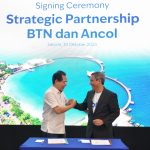Direktur Utama PT Bank Tabungan Negara (Persero) Tbk, Nixon LP Napitupulu (ketiga dari kanan) berbincang dengan Komisaris Utama dan Independen PT Pembangunan Jaya Ancol Tbk, Irfan Setiaputra (ketiga dari kiri), disaksikan Direktur Network & Retail Funding BTN, Rully Setiawan (kiri), Direktur Utama PT Pembangunan Jaya Ancol Tbk, Winarto (kedua dari kiri), Direktur Keuangan Ancol, Daniel Nainggolan (kedua dari kanan), serta Direktur Finance & Strategy BTN, Nofry Rony Poetra (kanan), dalam seremoni penandatanganan kerja sama strategis antara BTN dan Ancol di Jakarta, Kamis (30/10). Kerja sama ini mencakup penyediaan layanan jasa perbankan, program sponsorship, solusi transaksi digital melalui Bale Korpora, serta fasilitas pembiayaan khusus bagi karyawan Ancol sebagai bagian dari dukungan BTN terhadap penguatan kawasan pariwisata Ancol dan pembangunan kota Jakarta.