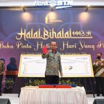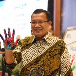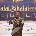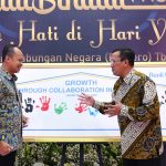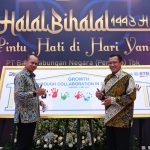 Direktur Utama Bank BTN Haru Koesmahargyo berbincang dengan Dirjen Perumahan Kementerian PUPR Iwan Suprijanto usai menyaksikan pembubuhan cap telapak tangan pada acara Halal Bihalal Bank BTN dengan Stakeholder dari Asosiasi Pengembang, Kementerian PUPR, Kementerian Keuangan, BP Tapera dan PT Sarana Multigriya Finansial (SMF) di Jakarta, Rabu (11/5). Pembubuhan cap telapak tangan merupakan simbolik dari komitmen Bank BTN dan para stakeholder dalam berkolaborasi membangun rumah rakyat dengan tema “Growth Through Collaboration in Diversity”. Tahun ini Bank BTN berkomitmen melakukan pembiayaan rumah subsidi mencapai 200.000 unit dengan dukungan dari semua stakeholder.