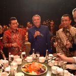 Komisaris Independen PT Bank Tabungan Negara (Persero) Tbk Panangian Simanungkalit (ketiga kiri), Wakil Direktur Utama BTN Oni Febriarto Rahardjo (keempat kiri), dan Direktur Network and Retail Funding BTN Rully Setiawan (kedua kanan) kompak tersenyum bersama para nasabah sambil melakukan tradisi Yusheng dalam kegiatan BTN Economic Outlook & Chinese New Year 2026 di Surabaya, Kamis (26/2)