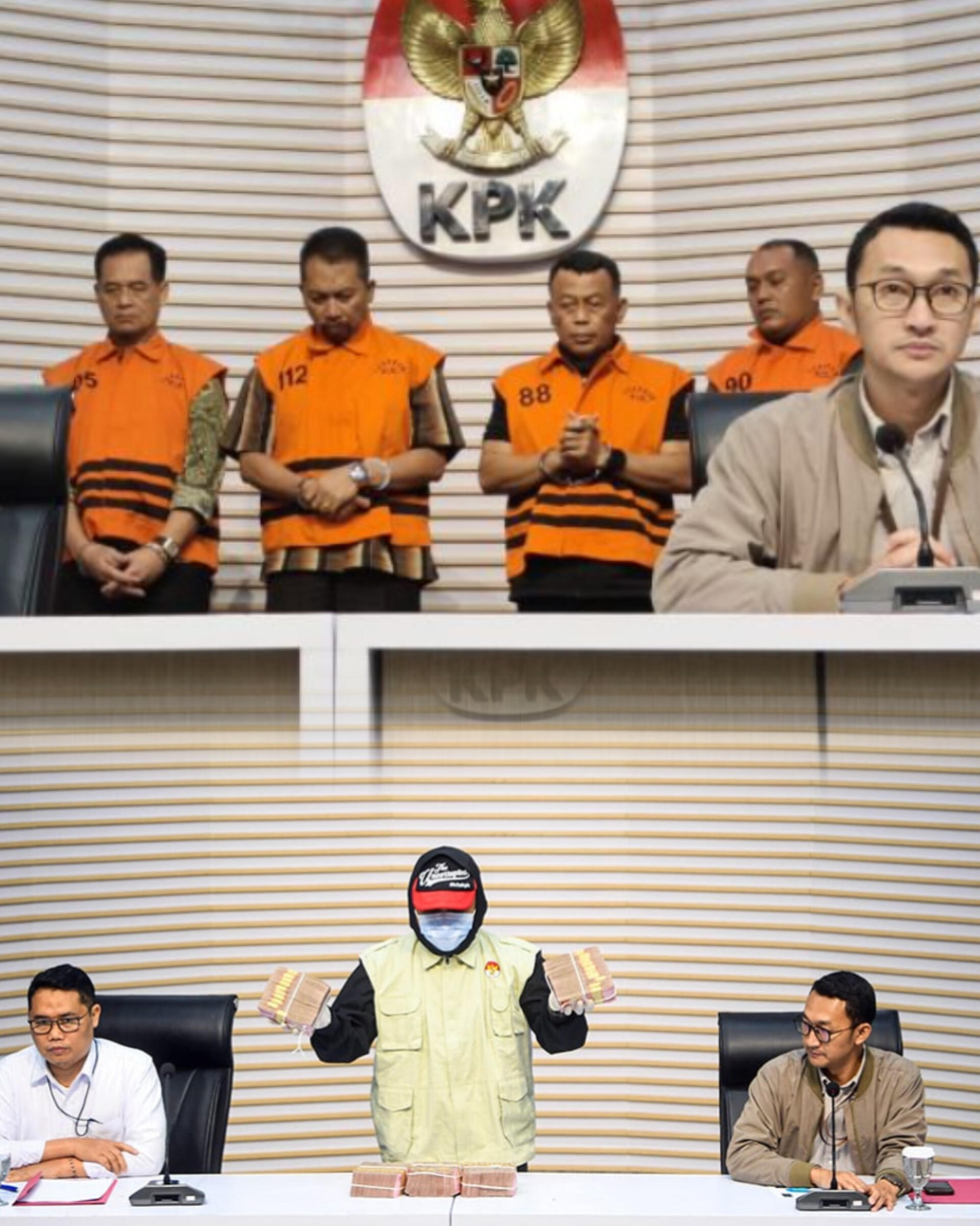 uang ratusan juta rupiah dalam pecahan rupiah tersebut dipamerkan dalam konferensi pers di Gedung Merah Putih KPK, Jakarta, Minggu (9/11/2025) dini hari.