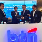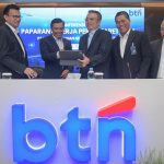Direktur Utama BTN Nixon L.P. Napitupulu berbincang dengan Wakil Direktur Utama BTN Oni Febriarto Rahardjo , Direktur Consumer BTN Hirwandi Gafar, Direktur Finance BTN Nofry Rony Poetra, dan Direktur Distribution & Institutional Funding BTN Jasmin di sela Paparan Kinerja Keuangan BTN Kuartal I/2024 di Jakarta, Kamis (25/04/2024). BTN mencatatkan penyaluran kredit dan pembiayaan pada kuartal I/2024 tembus Rp344,2 Triliun atau tumbuh 14,8% dibanding periode yang sama tahun sebelumnya yang tercatat sebesar Rp299,7 triliun. Pertumbuhan kredit tersebut ditopang oleh kredit dan pembiayaan perumahan serta kredit bermargin tinggi (high-yield loans) yang cukup diminati oleh masyarakat. BTN telah secara konsisten menjaga momentum pertumbuhan sejak tahun lalu yang didukung oleh penajaman strategi serta transformasi bisnis secara menyeluruh. BTN juga telah melakukan rebranding logo pada kuartal I/2024 ini sebagai bentuk komitmen untuk meningkatkan kualitas layanannya dalam rangka mencapai visinya, yakni The Best Mortgage Bank in South East Asia.