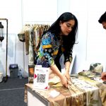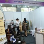 Seorang pembeli sedang mencoba produk dari Atico Ecoprint, Usaha Mikro Kecil dan Menengah (UMKM) yang dibina PT Bank Tabungan Negara (Persero) Tbk, di acara Natal Bersama Kementerian BUMN di Jakarta, Senin (16/1). Selain melakukan pembinaan UMKM, Bank BTN juga aktif menyalurkan kredit dan pembiayaan bagi kelompok usaha ini. Penyaluran pembiayaan tidak hanya difokuskan untuk UMKM di sektor properti tapi juga industri kreatif lainnya. Hingga Desember 2023, Bank BTN mencatatkan penyaluran KUR sekitar Rp2 triliun atau melesat 195 % yoy dari Rp682 miliar pada Desember 2022.