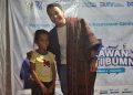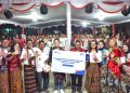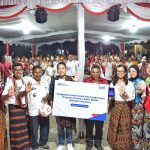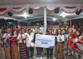Human Capital & Strategic Division Head PT Bank Tabungan Negara (Persero) Aldo Bimantoro (keenam kiri) bersama Penata Kelola Perusahaan Negara Muda Rugun Hutapea (kedelapan kiri) menyerahkan secara simbolis bantuan program anti stunting kepada PJ Kepala Desa Magepanda Yosafat Lacidius (ketujuh kiri) dan Camat Magepanda Kristianus Amstrong (kelima kiri) di acara penutupan Relawan Bakti BUMN bersama BTN di Desa Magepanda, Maumere, Nusa Tenggara Timur, Selasa (22/5). BTN kembali bergerak melawan bullying dengan mengedukasi anak dan orang tua di Desa Magepanda bersama 10 Relawan Bakti BUMN Batch V yang terpilih. Selain memberikan edukasi untuk melawan bullying, BTN bersama para relawan juga melaksanakan program anti stunting dengan memberikan edukasi bagi para ibu hamil terkait pemenuhan gizi. Program tersebut juga dilengkapi dengan kegiatan membersihkan sarana pra sarana umum di Desa Magepanda sebagai wujud kepedulian pada lingkungan hidup. Secara total, melalui program TJSL tersebut, BTN menyalurkan bantuan senilai ratusan juta rupiah.
