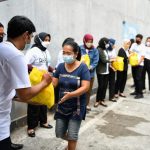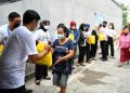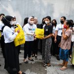 Karyawan usia milenial PT Bank Tabungan Negara (Persero) Tbk. membagikan bantuan paket sembako kepada masyarakat tidak mampu di sekitar kawasan Menara Bank BTN di Jakarta, Senin (11/4). Penyerahan ratusan paket sembako tersebut merupakan komitmen Bank BTN untuk memberikan manfaat bagi masyarakat Indonesia terutama dalam mendukung tercapainya pemenuhan hak dasar manusia. Bantuan bahan pangan tersebut juga disalurkan sebagai bentuk Tanggung Jawab Sosial dan Lingkungan (TJSL) Bank BTN sebagai bagian dari BUMN.