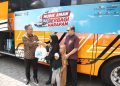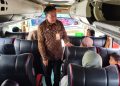 Wakil Menteri Koordinator Bidang Hukum, HAM, Imigrasi dan Permasyarakatan Otto Hasibuan (dari kiri), Wakil Menteri Hukum Edward Omar Sharif Hiariej, Direktur Utama PT Bank Mandiri Taspen Panji Irawan, dan Vice President Bank Mandiri Andre Asade melepas keberangkatan peserta Mudik Bersama Idul Fitri 1447 H di kantor Kementerian Hukum, Jakarta, Kamis (12/3). Program CSR mudik bersama ini diikuti oleh sekitar 400 peserta sebagai bentuk dukungan pemerintah dan mitra strategis dalam membantu masyarakat pulang ke kampung halaman dengan aman dan nyaman. Selain itu kegiatan ini juga menjadi wujud kolaborasi antara Bank Mandiri Taspen dengan kementerian dan berbagai perusahaan dalam mendukung program sosial pemerintah serta memperkuat sinergi yang bermanfaat bagi masyarakat luas.