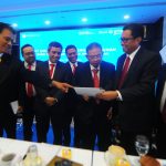 Komisaris Utama Bank BTN Chandra M Hamzah (kiri) bersama Direktur Utama Bank BTN terpilih Nixon LP Napitupulu (ketiga kiri), Wakil Komisaris Utama Bank BTN Iqbal Latanro (ketiga kanan), beserta jajaran Direksi dan Komisaris Bank BTN menunjuk dokumen usai Rapat Umum Pemegang Saham Tahunan (RUPST) Bank BTN Tahun Buku 2022 di Jakarta, Kamis (16/3). Dalam RUPST Bank BTN, pemegang saham melakukan perubahan susunan direksi, selain menunjuk Nixon LP Napitupulu sebagai Direktur Utama, RUPST juga mengangkat Oni Febriarto Rahardjo sebagai Wakil Direktur Utama dan Hakim Putratama sebagai Direktur Institutional Banking. Selain itu, pemegang saham juga menyetujui pembagian dividen tunai sebesar Rp609 miliar atau Rp43,394 per lembar saham. Jumlah tersebut merupakan 20% dari perolehan laba bersih Bank BTN tahun 2022 yang sebesar Rp3,04 triliun.