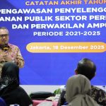 Direktur Human Capital & Compliance PT Bank Tabungan Negara (Persero) Tbk, Eko Waluyo (tengah) tersenyum usai menerima apresiasi dari Pimpinan Ombudsman RI, Yeka Hendra Fatika, dan Kepala Keasistenan Utama III Ombudsman RI, Yustus Y. Maturbongs di Kantor Ombudsman RI, di Jakarta, Kamis (18/12). BTN kembali mendapatkan apresiasi sebagai Mitra Strategis Pelayanan Publik Sektor Perekonomian I dari Ombudsman Republik Indonesia. Penghargaan ini sejalan dengan komitmen BTN dalam memberikan pelayanan terbaik bagi masyarakat Indonesia serta menjaga kepercayaan publik melalui penerapan tata kelola yang baik, kepatuhan terhadap regulasi, dan peningkatan kualitas layanan secara berkelanjutan. Bagi BTN, apresiasi ini menjadi pengakuan sekaligus motivasi untuk terus memperkuat peran sebagai mitra strategis pemerintah dalam mendorong pelayanan publik yang transparan, akuntabel, dan berorientasi pada kebutuhan masyarakat, khususnya dalam mendukung sektor perumahan dan perekonomian nasional.