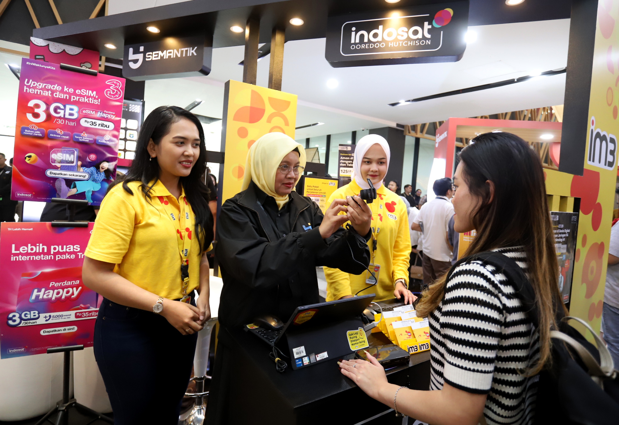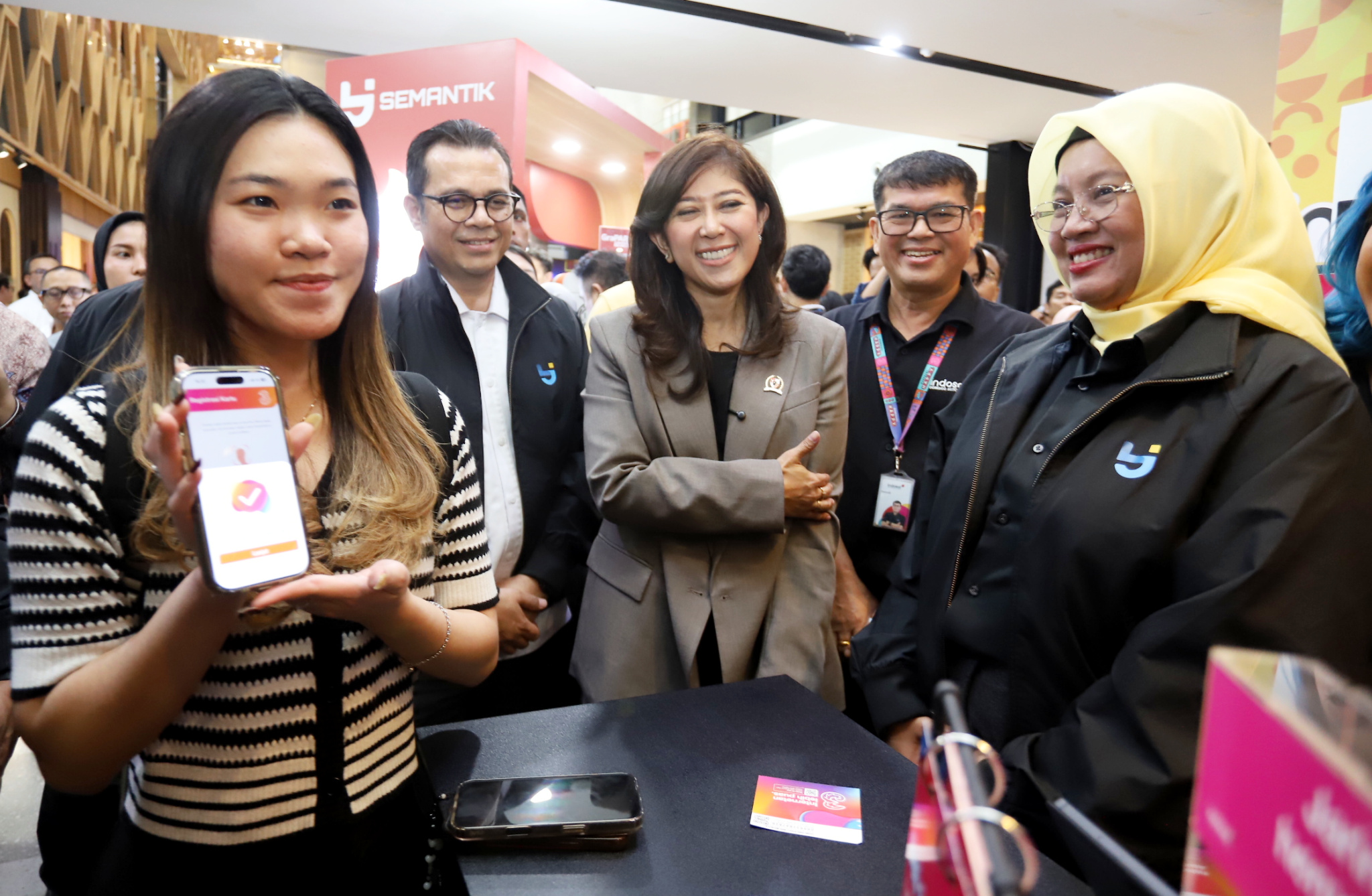 Menkomdigi Meutya Hafid (tengah), Wamen Komdigi Nezar Patria (kiri) dan Chief Legal & Regulatory Officer Indosat Reski Damayanti (kanan) berkunjung ke booth Indosat usai Peluncuran SEMANTIK (Senyum Nyaman dengan Biometrik) yang berlangsung hari ini, Selasa (27/1) di Jakarta. Pemerintah mulai menerapkan registrasi nomor seluler berbasis biometrik untuk menekan penipuan online yang semakin meresahkan masyarakat. Kebijakan ini diatur dalam Peraturan Menteri Komunikasi dan Digital Nomor 7 Tahun 2026.