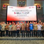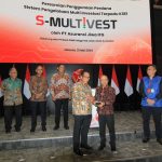 Kiri ke kanan. Direktur Keuangan dan Administrasi KSEI Imelda Sebayang, Komisaris Utama KSEI A.Fuad Rahmany, Direktur Utama KSEI Samsul Hidayat, Kepala Eksekutif Pengawas Pasar Modal Otoritas Jasa Keuangan (OJK) Inarno Djajadi, Kepala Eksekutif Pengawas Perasuransian dan Dana Pensiun OJK Ogi Prastomiyono, Direktur Utama Indonesia Financial Group (IFG) Hexana Tri Sasongko, Direktur Investasi IFG Life Mufri Dharmawan dan Direktur Syariah Banking CIMB Niaga Pandji P. Djajanegara saat peresmian penggunaan platform S-MULTIVEST di Bursa Efek Indonesia, Jakarta, Selasa (21/5). Kerja sama IFG Life dengan KSEI akan memperkuat tata kelola investasi di IFG Life, sesuai dengan komitmen IFG Life guna memastikan proses bisnis yang akuntabel dan berkelanjutan bagi nasabah.
