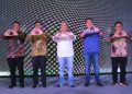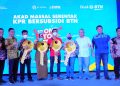 Direktur Consumer Bank BTN Hirwandi Gafar bersama Direktur Jenderal Pembiayaan Infrastruktur Kementerian PUPR Herry Trisaputra Zuna (tengah), Kepala Dinas Pekerjaan Umum dan Permukiman Provinsi Sumsel Basyarudin Akhmad (kedua kiri) dan Deputi Komisioner BP Tapera Ariev Baginda Siregar (kiri) meninjau proses akad kredit yang dilakukan debitur dalam kegiatan Akad Massal Serentak KPR Subsidi BTN di Palembang, Sumatera Selatan, Sabtu (25/6). Dalam kegiatan tersebut Bank BTN menggelar Akad Massal KPR Subsidi 10.000 Unit Rumah yang diharapkan dapat menjawab kebutuhan rumah rakyat sekaligus untuk menyukseskan Program Satu Juta Rumah.