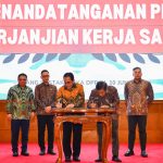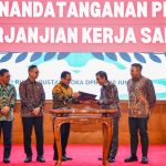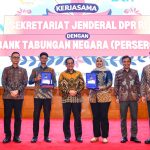 Direktur Utama BTN Nixon LP Napitupulu bersama Sekretaris Jenderal DPR RI Indra Iskandar menandatangani Perjanjian Kerja Sama antara BTN dan Sekretariat Jenderal (Setjen) DPR RI terkait Penyediaan Layanan Jasa Perbankan disaksikan oleh Direktur Network & Retail Funding BTN Rully Setiawan, Kepala Badan Keahlian Setjen DPR RI Inosentius Samsul, dan Deputi Bidang Administrasi Setjen DPR RI Sumariyandono, di Gedung Nusantara IV, Kompleks Parlemen Senayan, Jakarta, Selasa (10/6). BTN menggandeng Setjen DPR RI terkait kerja sama Penyediaan Layanan Jasa Perbankan seperti pengelolaan gaji Pegawai Pemerintah dengan Perjanjian Kerja (P3K) dan akses ke produk perbankan seperti kredit ringan, Kredit Pemilikan Rumah (KPR), dan produk investasi BTN.