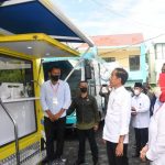 Presiden Jokowi didampingi Menteri Ketenagakerjaan Ida Fauziyah menyaksikan peserta penerima Bantuan Subsidi Upah (BSU) melakukan penarikan dana melalui ATM pada Mobil Kas Keliling (MKK) Bank BTN di Ternate, Maluku Utara, Selasa (27/9). Presiden Jokowi mengapresiasi komitmen Bank BTN untuk menyalurkan BSU kepada para pekerja sebagai kompensasi kenaikan harga Bahan Bakar Minyak (BBM). Hingga saat ini Bank BTN sudan menyalurkan BSU kepada 467.856 pekerja senilai Rp280 miliar.