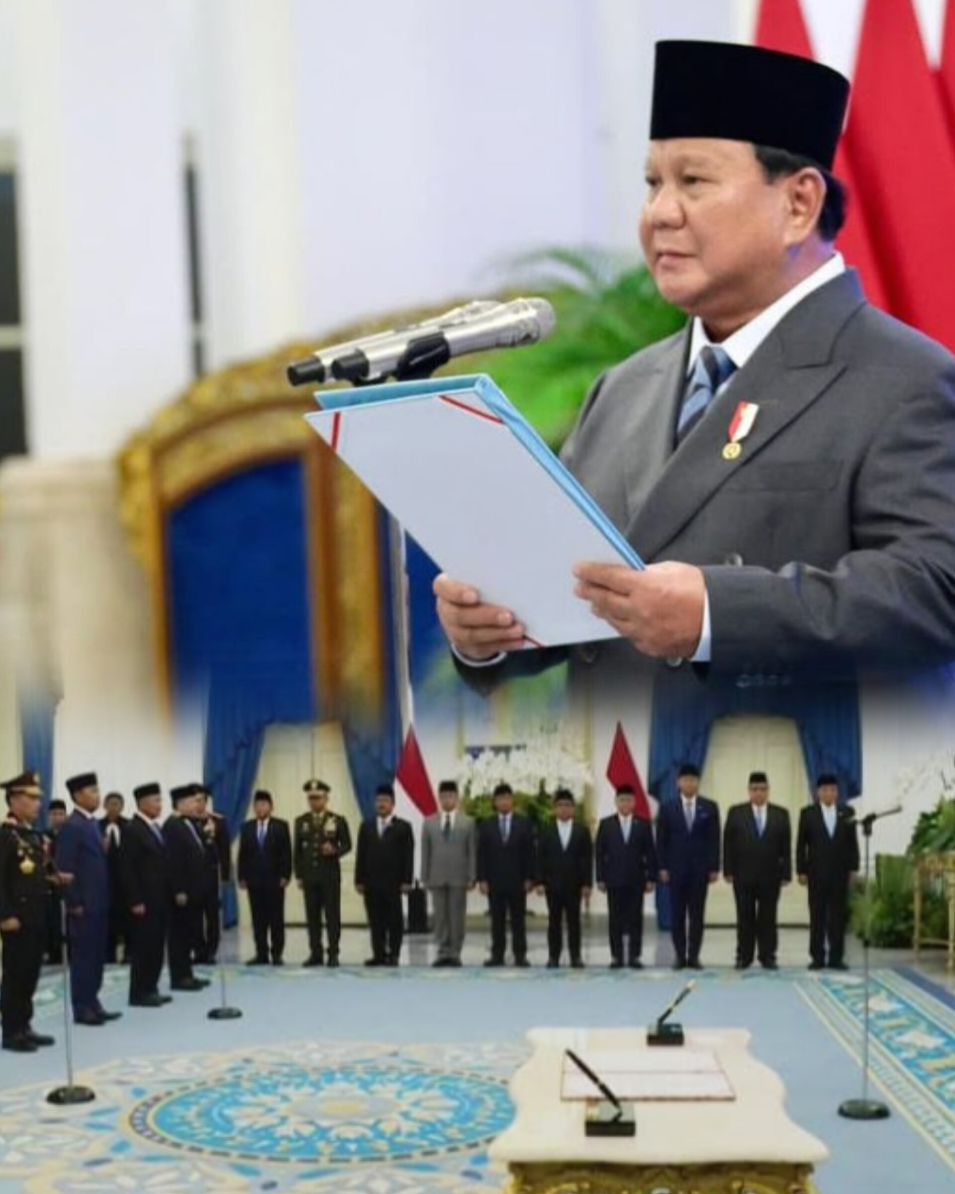 Usai pembacaan Keppres, Presiden Prabowo memimpin langsung pengambilan sumpah jabatan para pejabat yang dilantik.